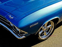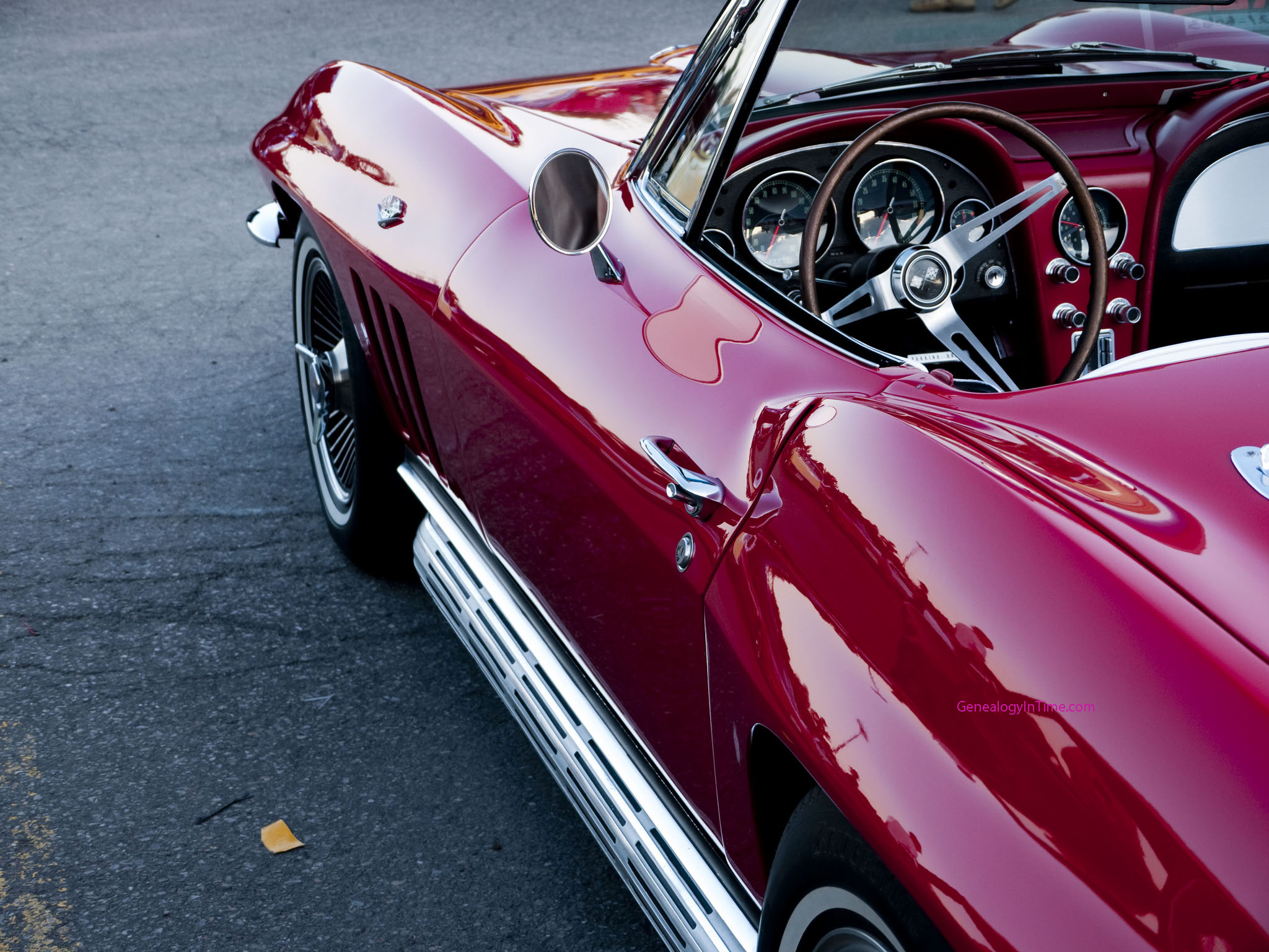 | 1970s Chevrolet truck reflected in a 1937 Chevrolet hubcap |